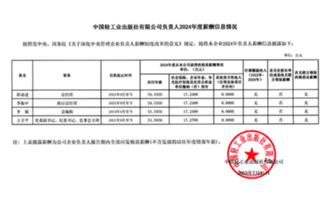 中国轻工业出版社有限公司党委书记、董事长、法定代表人